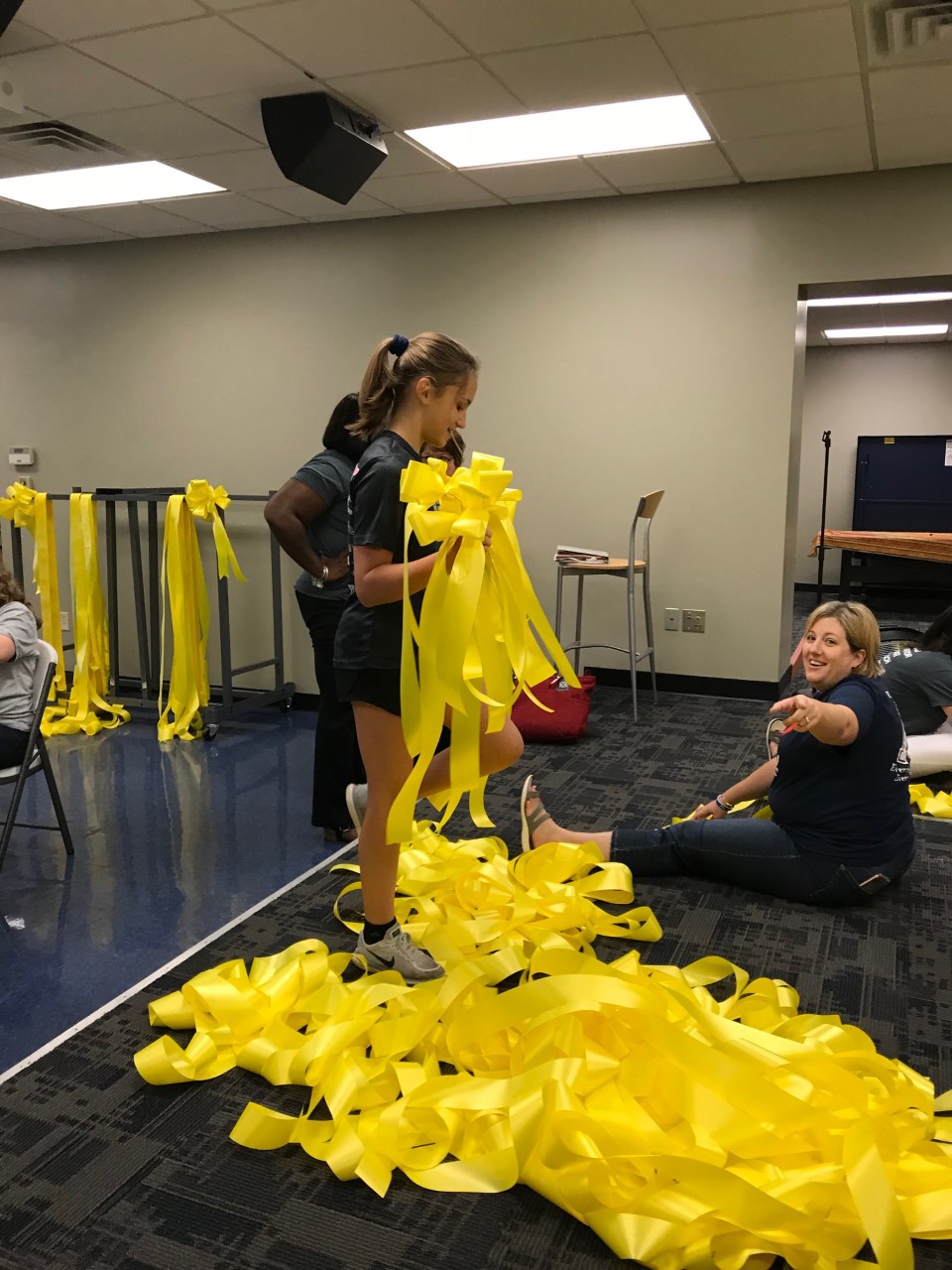 With Civic Affairs, Edwards helped students make yellow ribbons to affix to memorial trees for Beirut Memorial Observation.